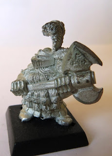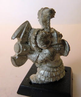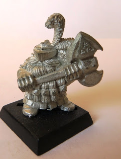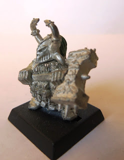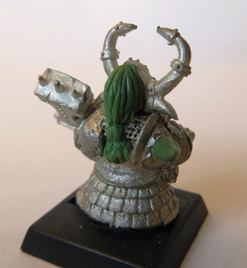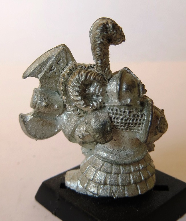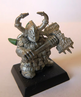 Champion Nain brise fer marauder qui est passe du cote obscur de la Force :) la tete provient d'un champion des guerriers du chaos premieres generation en kit plastique ,le marteau vient du seigneur de guerre nain du chaos de chez Avatar of War et j'ai rajoute un petit pique sur l'epaulette pour faire plus chaotique ( j'ai eu un peu mal au coeur en decoupant la tete de ce nain car je le trouve tres beau mais le resutat est a la hauteur de mes attente c'est une de mes conversions preferees )