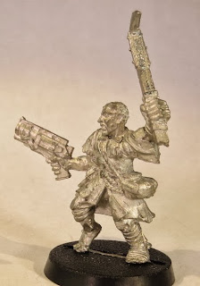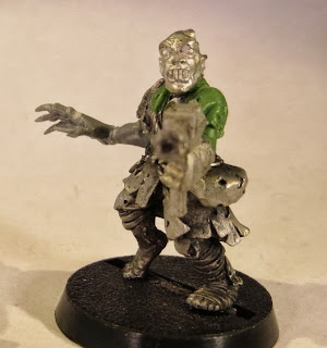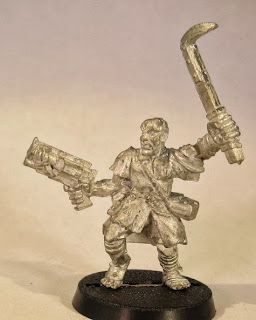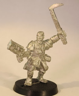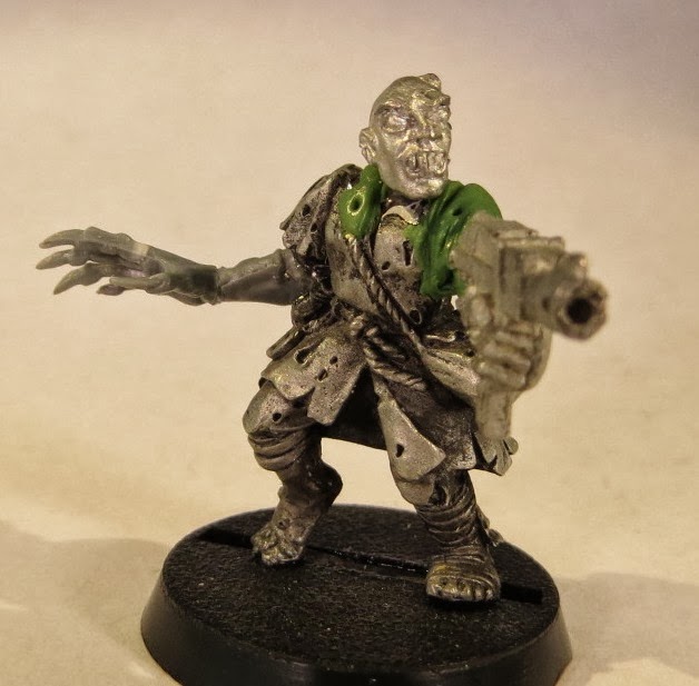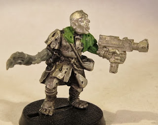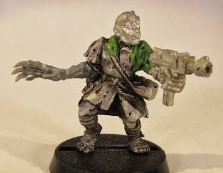 Figurine Games Workshop de Ganger fouisseur necromunda avec une mutation griffe qui provient des ghouls plastiques Warhammer Fantasy, le pistolet mitrailleur provient du chef fouisseur dont j'ai change la main dans un article precedent et la tete vient d'une ghoul metal des annees 90
