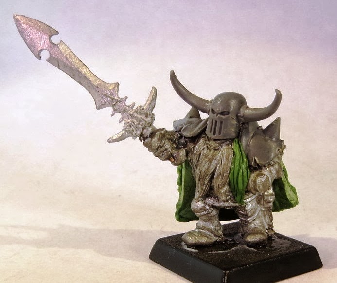 Nain du chaos Citadel Miniature que j'ai modifie en general nain du chaos car il n'existe aucune figurine de cette epoque . Les epaulettes proviennent des kits plastiques de marauder du chaos la tete des guerriers du chaos plastiques et l'epee provient d'une grappe d'arme metal de chez Reaper Miniature