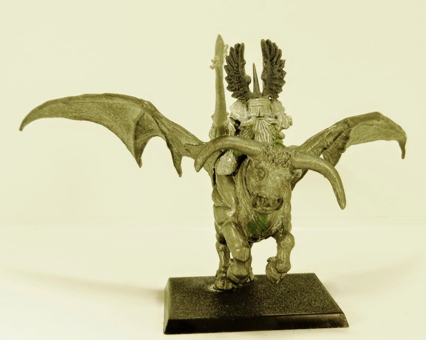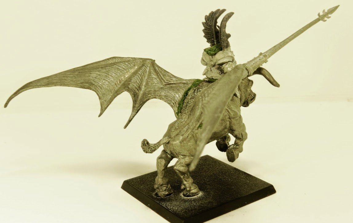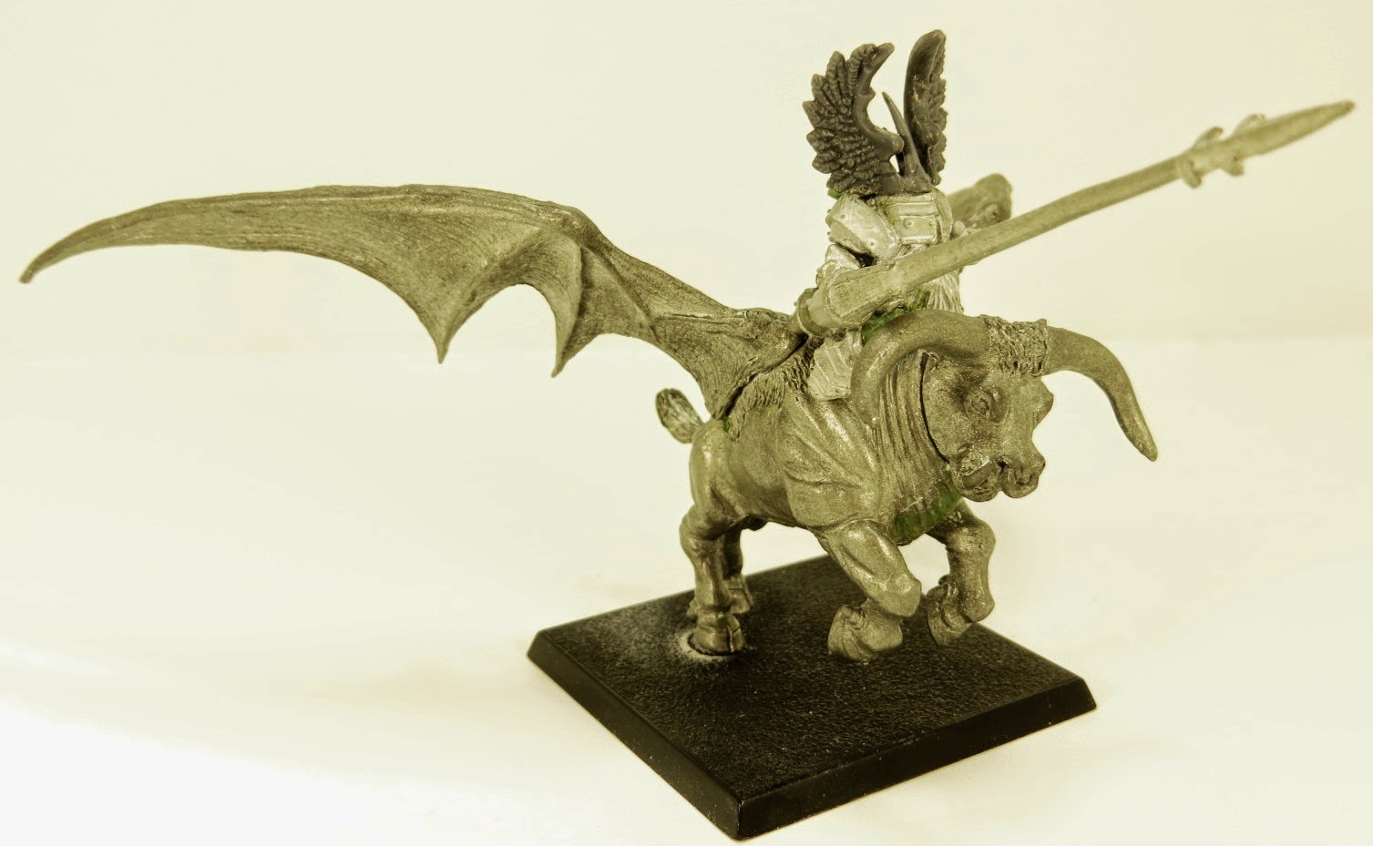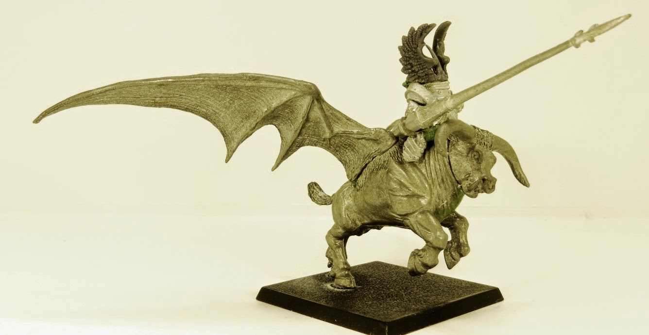 So I Recovered an old Marauder chaos dwarf on which I have added plastic wings of an Hight Elf Silver Helm on his head, the spear of the metal chaos knights from the years 95/98
