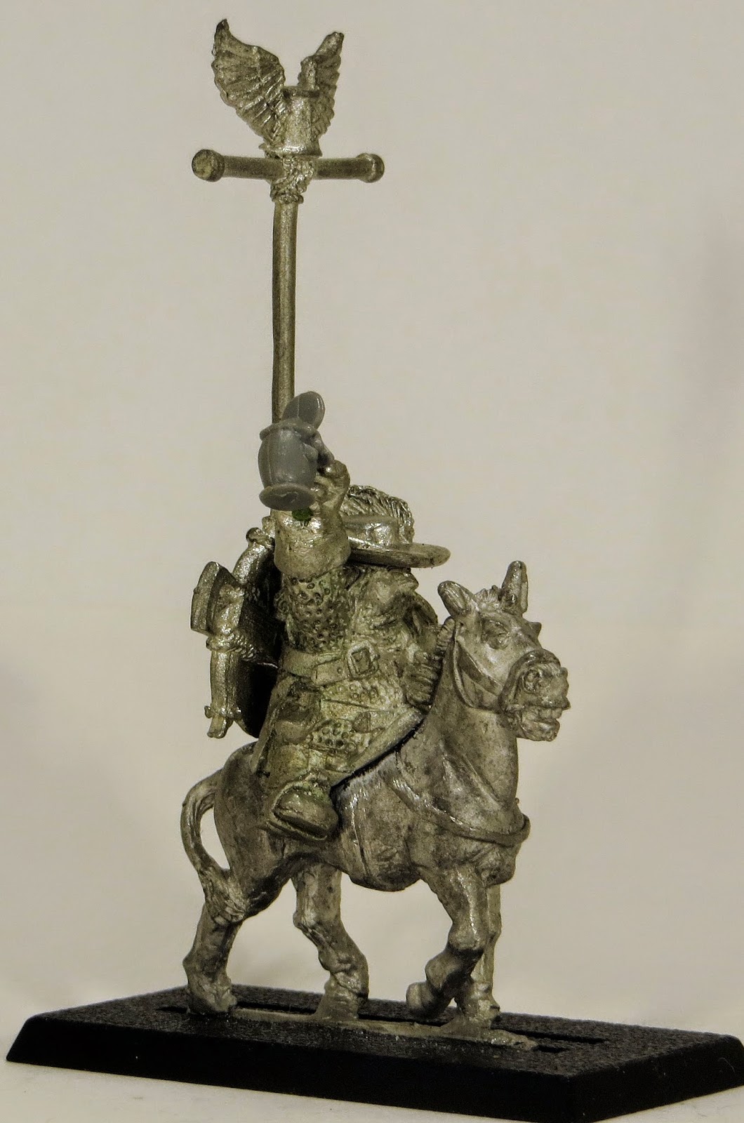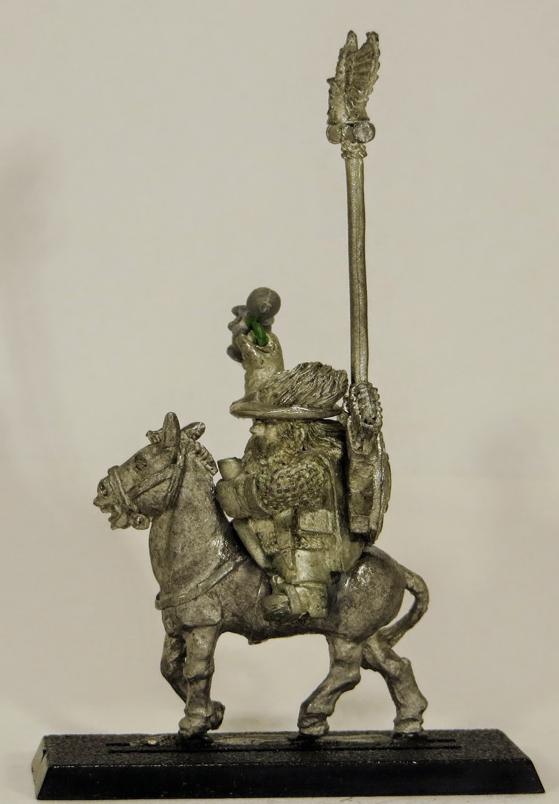 This is a small Production from Colin Dixon Miniature on witch I 've cut the helm who was realy ugly for a dwarf and the axe who was realy too long so I've assembled an hat from Reaper miniature and a shield from Games Workshop's Bugman dwarf and finally I've remove the original pony who was to small to replace by the old mule from Citadel Miniature 85/87
